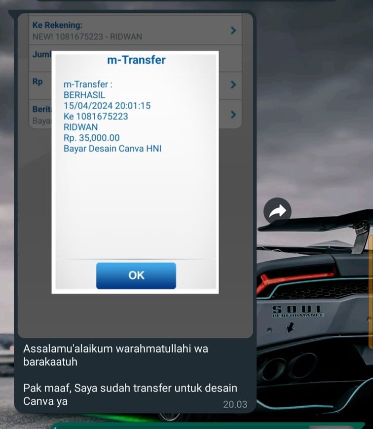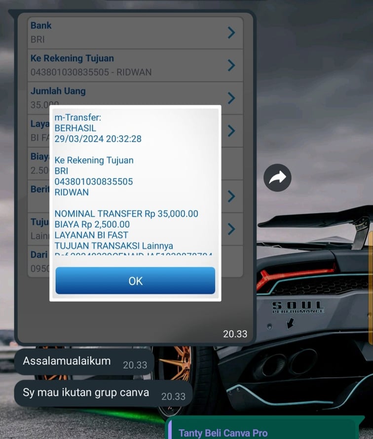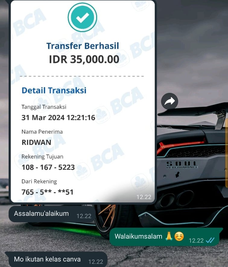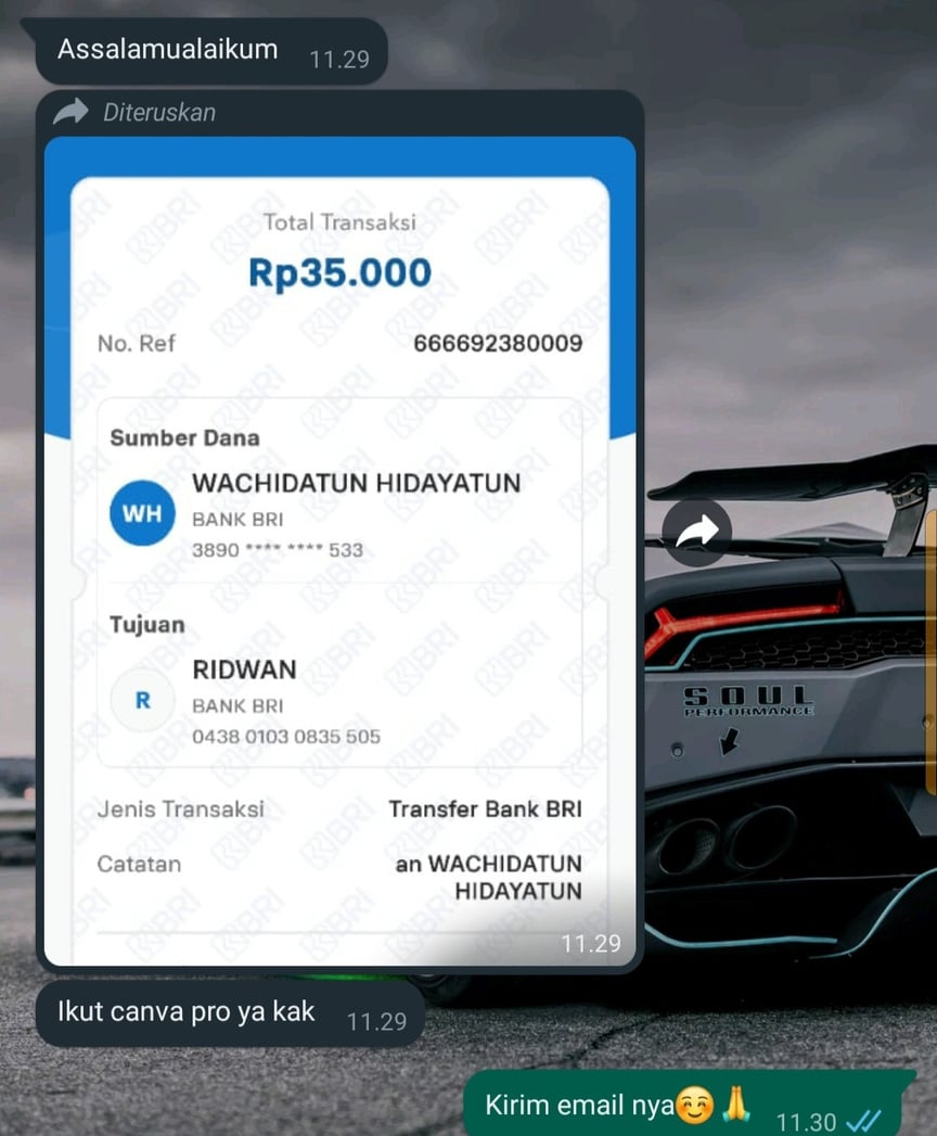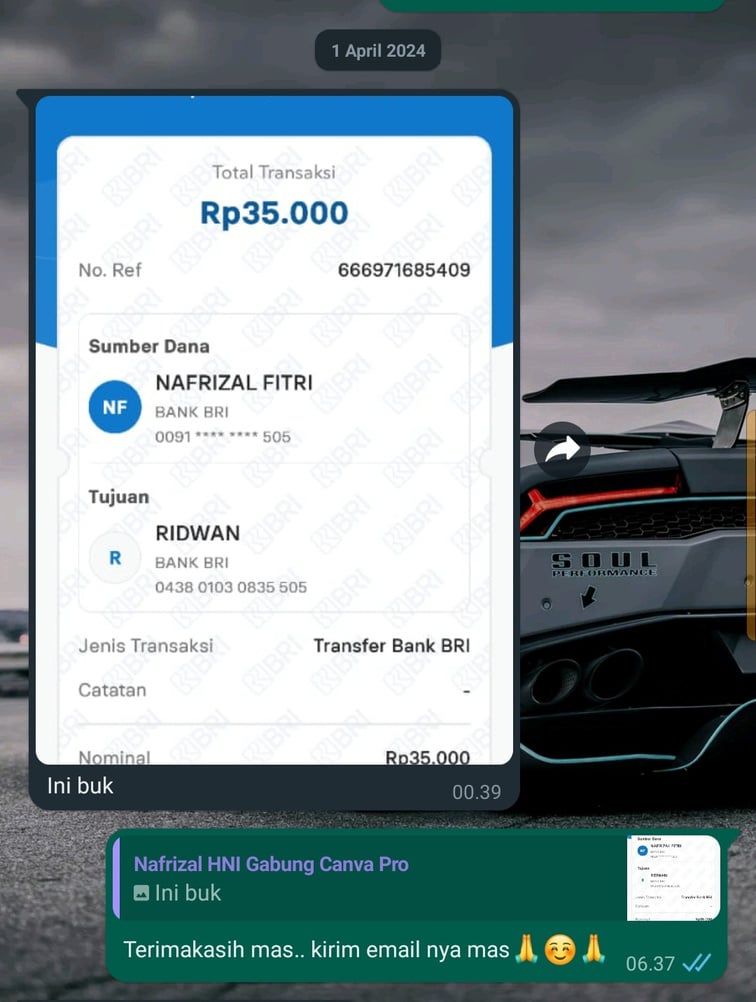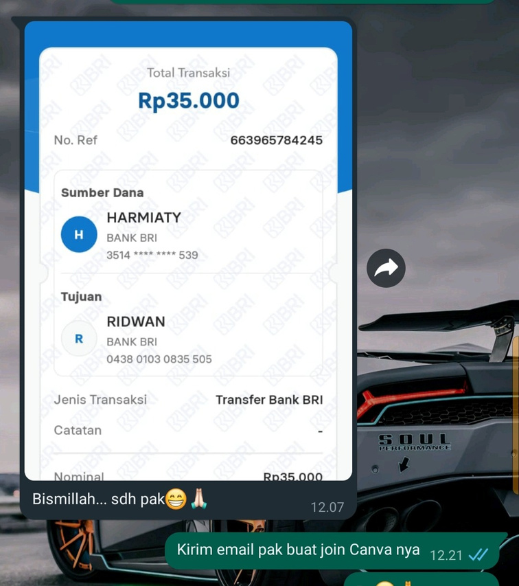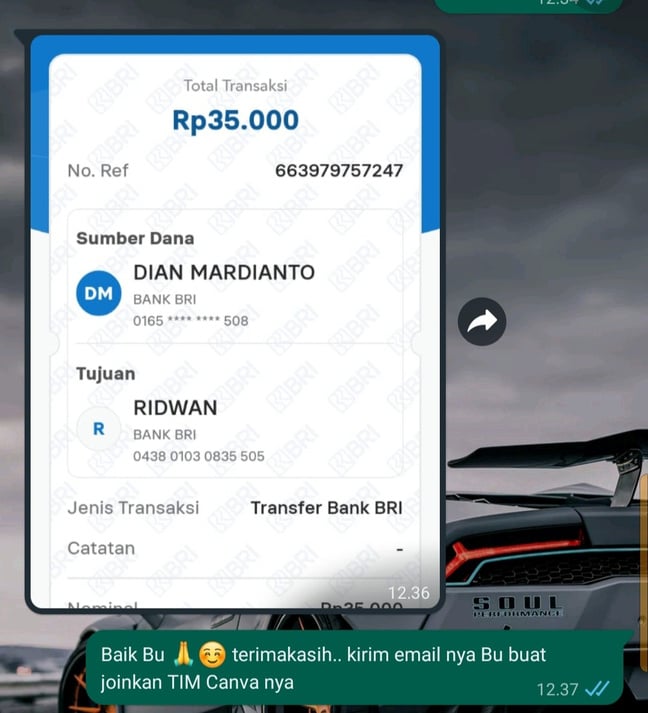 Mohon maaf izin yang sudah transfer dan join TIM CANVA PRO bukti transfernya saya jadikan testimoni yang belum gabung ..
